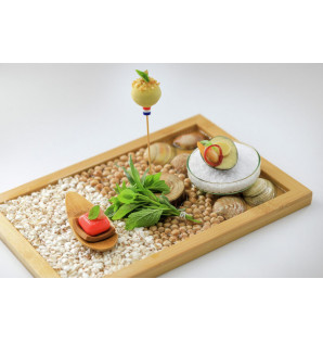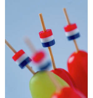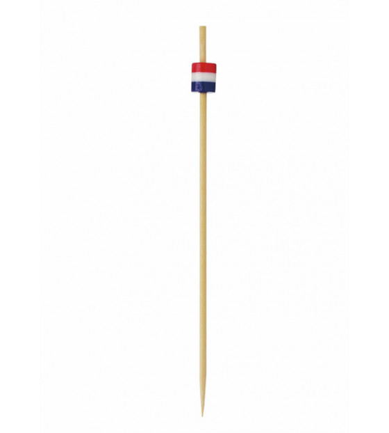 Pincho con perla tricolor azul, blanco y rojo, para utilizar como aperitivo o en brocheta. Una forma divertida de animar sus bufés en eventos deportivos o celebraciones nacionales...