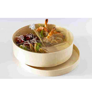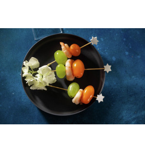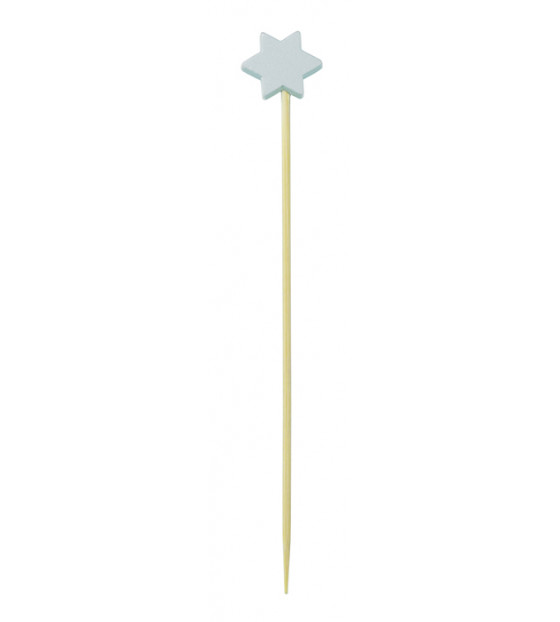 Pincho de bambú rematado con un motivo de estrella de madera blanca. La decoración perfecta para todos sus bufés temáticos: veladas ibicencas, bodas, celebraciones religiosas...