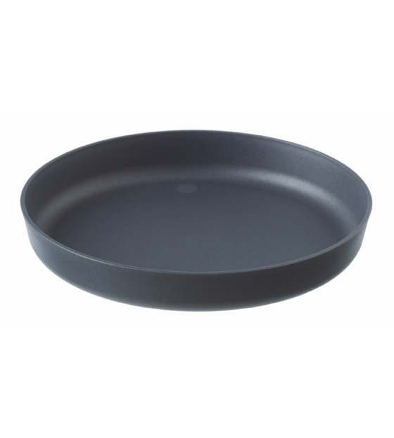 Plato redondo gris de PP/talco, apto para microondas. Su forma depurada y moderna, así como su robustez lo hacen perfecto para multitud de usos.