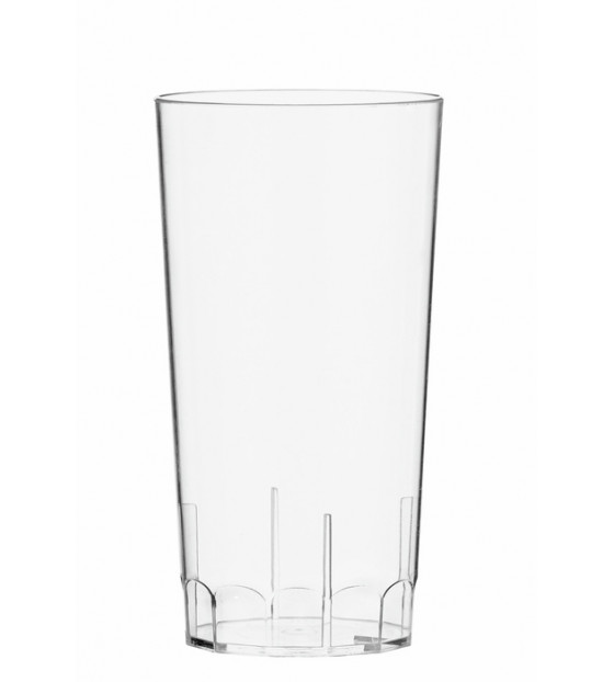 Vaso tubo recto y transparente, lavable y reutilizable. Ideal para zumos de fruta o cervezas ligeras.
