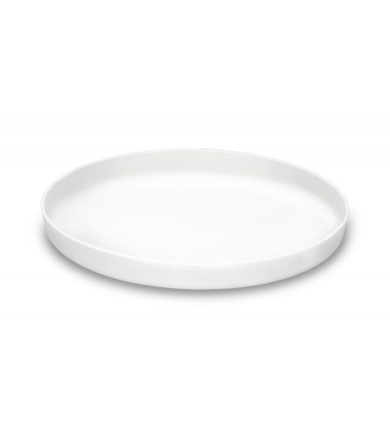 Plato redondo blanco de PP/talco, apto para microondas. Su forma depurada y moderna, así como su robustez lo hacen perfecto para multitud de usos.