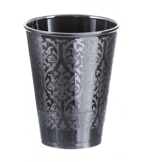 Vasito negro ensanchado de 6 cl, con un elegante motivo barroco. Este producto apto para la congelación, se cierra con una tapa transparente CBK6. Este modelo también está disponible transparente 6 y 14 cl VB6C y VB14C y negro 14 cl VB14N