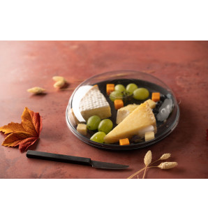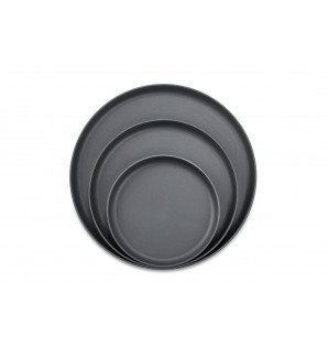 Plato redondo gris de PP/talco, apto para microondas. Su forma depurada y moderna, así como su robustez lo hacen perfecto para multitud de usos.