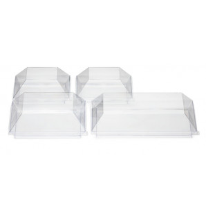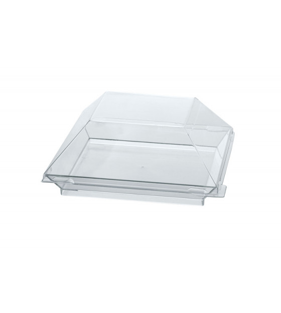 Tapa transparente, de PET reciclado y reciclable, adaptada a los platos cuadrados Cubik de 10 cm: - PS cristal ACU10C, PS negro ACU10N - bagazo ACF10 - madera ACB10 - bambú ACKB10 Se fabrica en Francia
