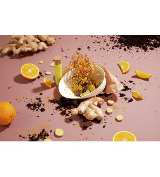 Ramequín de bagazo blanco, con diseño asimétrico y depurado. Puede combinarse con el plato a juego KAB163L