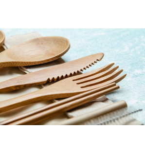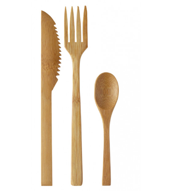 Cubiertos de bambú resistentes, se venden en kit 4/1 (cubiertos, servilleta). Con un barniz apto para alimentos, estos cubiertos de alta calidad son perfectos para sus soluciones de menús selectos de comida para llevar. La gama de cubiertos Bambú Prémium se compone de: - Cuchillo: CBB17, 170 mm - Tenedor: FBB17, 170 mm - Cucharilla: PCB15, 115 mm Los cubiertos están disponibles a granel (100 de cada) KBA300 y en kits: KBA312, KBA412, KBA612