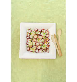 Fabricados en bambú natural, los cubiertos son biodegradables y resistentes, aptos para su uso a temperaturas de hasta 70°C. Su elegante diseño encaja perfectamente con los servicios de catering que se preocupan por su impacto medioambiental. Su elegante diseño encaja perfectamente con los servicios de catering y eventos que se preocupan por su impacto medioambiental.