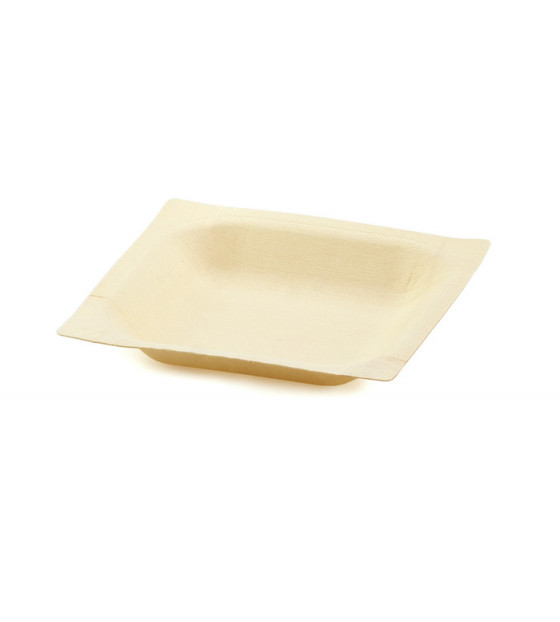 Plato cuadrado de madera, ecodiseñado y respetuoso con el medio ambiente.