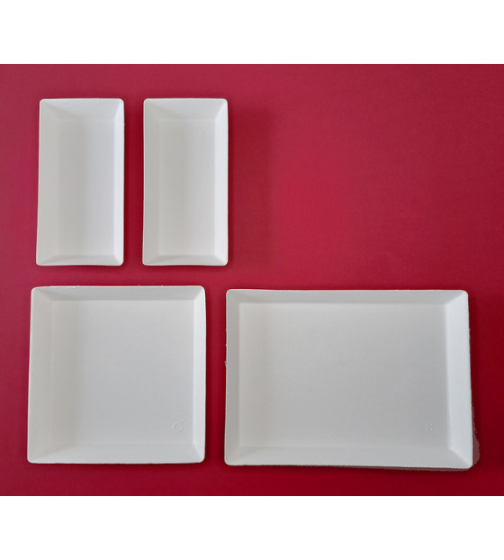 Platos Cubik Bagazo fabricados con fibra de caña blanca, ideales para dar un aspecto natural y depurado.
