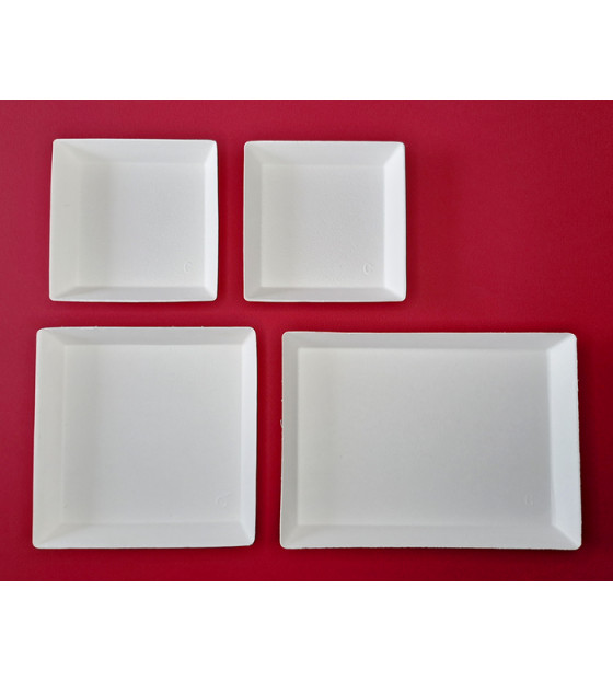 Platos Cubik Bagazo fabricados con fibra de caña blanca, ideales para dar un aspecto natural y depurado. Se pueden calentar en el microondas o en el horno, estos platos están adaptados a todas nuestras bandejas para comida Thema.
