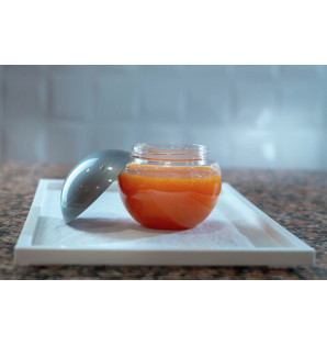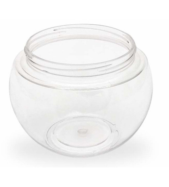 Tarro transparente con formas redondeadas que se cierra con una tapa para enroscar: