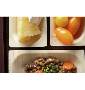 Platos Cubik Madera fabricados con una fina lámina de madera que aporta un aspecto natural y auténtico a sus soluciones de menús.