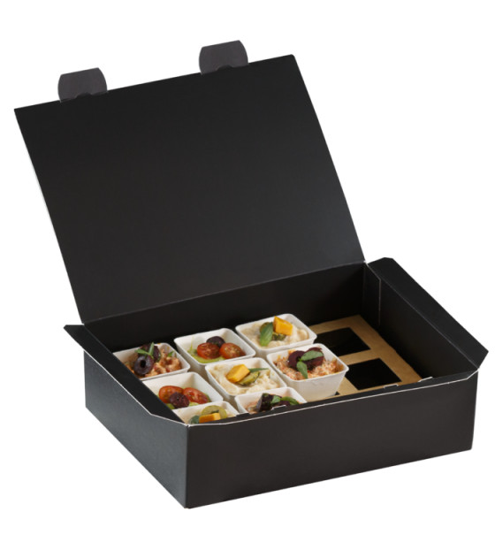 Caja para compartir, facilita el transporte de sus vasitos de aperitivo