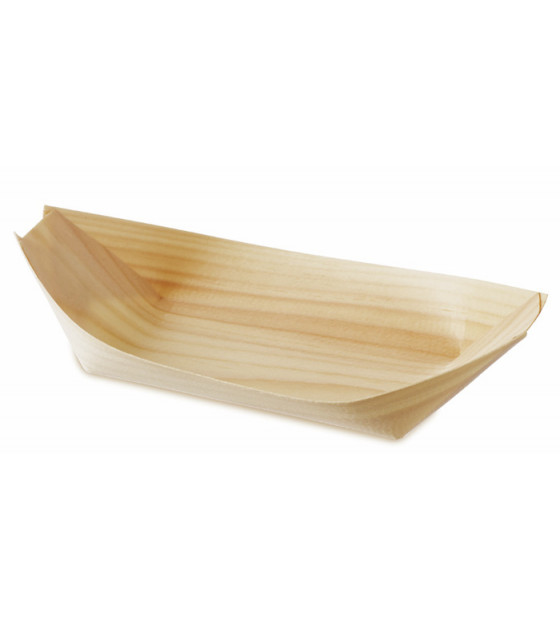 Barquilla pequeña con finas láminas de madera replegada, con esquinas no estancas. Puede utilizarse en horno y microondas.