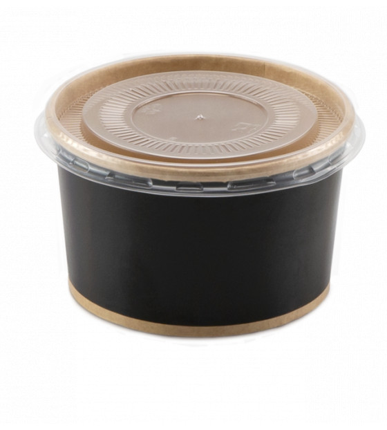 Ensaladera negra interior kraft, ideal para preparaciones frías.