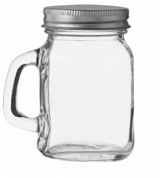 Mini taza de vidrio de 12 cl con tapón de metal gris para enroscar. Ideal para presentaciones para servir o llevar, con un toque divertido. Producto apto para su congelación, es reciclable. Disponible en paquetes pequeños de 20 u. MMP12