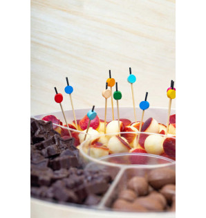 La gama de pinchos Ring está disponible en 2 tamaños (5 y 7 cm) y 10 colores. Utilizar colores vivos y jugar con las alturas es garantía de destacar entre la multitud y aportar alegría a todos sus eventos. El pincho vainilla puede combinarse con el modelo de 5 cm STIK5VA Los pinchos de 7 cm son: . blanco: STIK7BC . negro: STIK7NO . naranja: STIK7MA . amarillo: STIK7JA . vainilla: STIK7VA . menta glacial: STIK7MG . azul: STIK7BL . rojo: STIK7RG . fucsia: STIK7FU .verde: STIK7VT