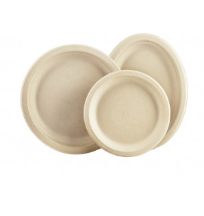 Plato redondo de bagazo de color natural. Disponible en Ø170 AF17N y ovalado 260x190 mm AF26N