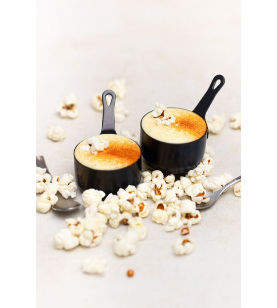 Mini sartén negra de acero inoxidable para una presentación original y única de preparaciones frías o calientes, salsas, mini postres... Puede utilizarse en el horno para calentarse. Es lavable, reutilizable y reciclable.