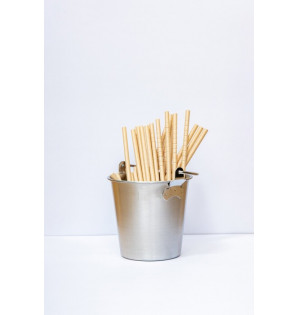 Contenedor de acero inoxidable en forma de cubo para pajitas, cubiertos sueltos, servilletas o agitadores. También puede ser una solución elegante para deshacerse de los pinchos de aperitivo o los huesos de aceituna en sus eventos. Lavables y reutilizables, los cubos pueden apilarse.