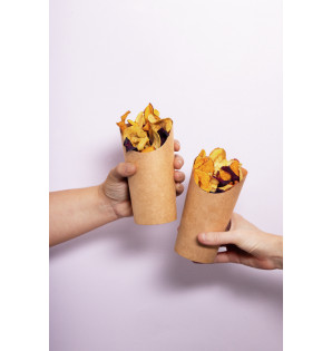 Tarro para wrap de cartón kraft antigrasa multiusos, de gran capacidad: para wraps y también para patatas fritas, churros, nuggets o palitos de verduras. Es reciclable y está disponible en paquetes pequeños PFK48