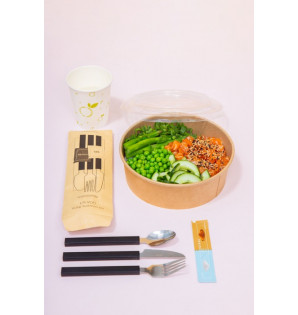 Tarro redondo ultrarresistente, de kraft y PE, adaptado a la comida para llevar. Una tapa de PP (se vende por separado) garantiza un transporte seguro a la vez que proporciona una perfecta visibilidad del contenido CPOK190 La gama Pokebowl está disponible en 5 modelos: