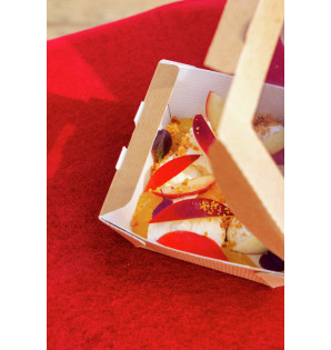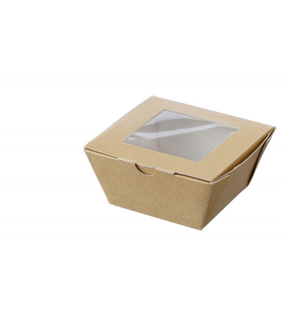Barquilla cuadrada de cartón kraft con ventana de PET.