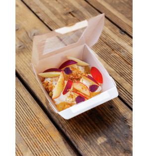 Su capacidad de 50 cl es ideal para un plato pequeño o un postre. Con su tapa abatible, resulta muy práctica para la comida para llevar.