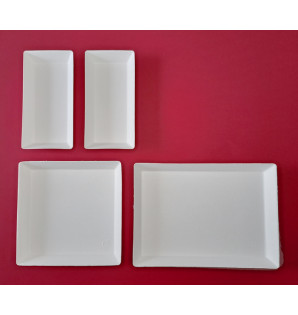 Plato rectangular Cubik Fibra de bagazo blanco, apto para horno y microondas. - ACF65: 130 x 65 x alt. 15 mm y tapa ACC6 - ACF10: 100 x 100 x alt. 15 mm y tapa ACC10 - ACF13: 130 x 130 x alt. 15 mm y tapa ACC13 - ACF18: 180 x 130 x alt. 15 mm y tapa ACC18 Los platos Cubik también están disponibles en PS cristal o negro, madera, bambú y cartón.