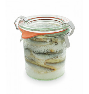 Tarro de 14 cl de vidrio reutilizable, ideal para dar un aspecto auténtico a sus platos y postres para llevar.