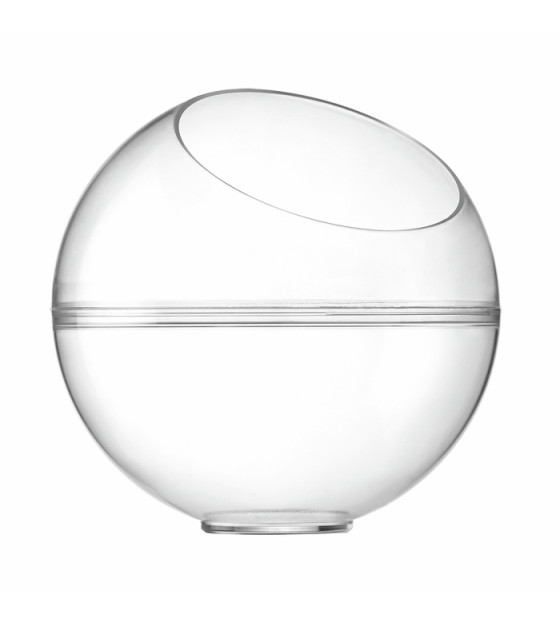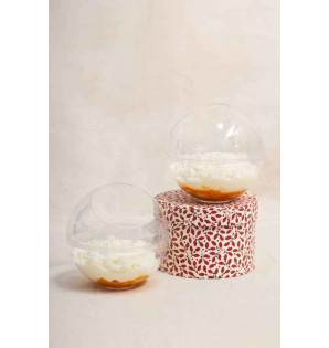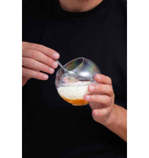 Un tarro esférico de 30 cl con una abertura en la parte superior (Ø70 mm) para facilitar la degustación. De PS transparente, la gama Perla está disponible en dos capacidades y 2 versiones, abierta o cerrada: