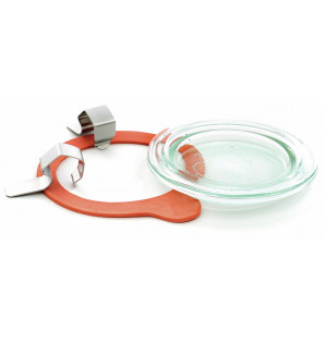 Precio 32,70 € impuestos excl.Unidad : 48CBOK10Tapa de vidrio Ø100 mm, adaptada a los Boko BOK29 29 cl, BOK37 37 cl y BOK58 58 cl. Esta tapa se utiliza con una junta de goma JOINT10 y dos clips de acero inoxidable CLIP2, que se venden por separado, para garantizar un cierre hermético. -