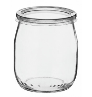 Precio 43,90 € impuestos excl.Unidad : 100VY18Tarro Yogur de vidrio de 18 cl, que puede cerrarse de dos maneras: con tapa de aluminio termosellable (parte plateada hacia el tarro), CVA7 con tapa transparente de rPET, CBK6 Apto para horno, microondas y congelador, Yogur es reutilizable y reciclable. Una forma excelente de presentar yogures y otros postres cremosos. -