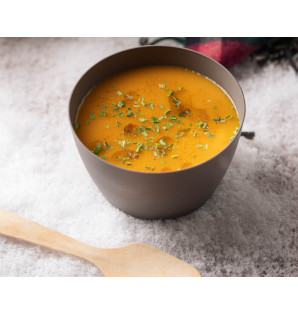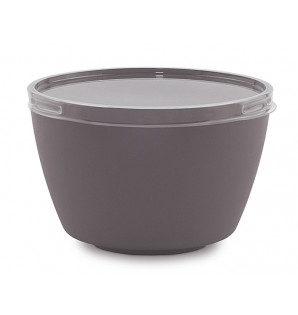 Cuenco gris mate con una hermosa textura de imitación de gres. Se fabrica en Francia a partir de PP con talco añadido (para reducir el uso de plástico), es apto para microondas, lavable y reutilizable.