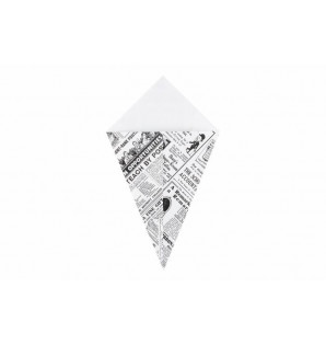 Precio 22,00 € impuestos excl.Unidad : 200CPN265Cucurucho de cartón resistente, disponible en 2 tamaños y 2 acabados: Blanco – ref. CPB215 o CPB265 Impresión de periódico – ref. CPN215 o CPN265 Perfecto para comida para llevar de patatas fritas, churros, caramelos… Se vende plano para optimizar el almacenamiento, y toma forma rápida y fácilmente. -