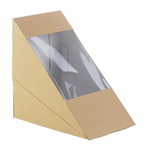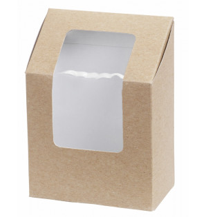 Precio 97,50 € impuestos excl.Unidad : 500WB90Caja kraft con ventana transparente para ver fácilmente el contenido. Ideal para contener wraps y tortillas. Se entrega plana y es fácil de montar, por lo que optimiza el espacio de almacenamiento en las estanterías y escaparates de cafeterías, bocaterías y panaderías. Para consumir el mismo día. -