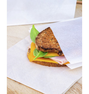 Precio 85,10 € impuestos excl.Unidad : 500SOB20Bolsa para sándwiches de papel antigrasa, formato sándwich. Con certificación FSC®, es una solución ecológica para presentar sus productos. Se puede utilizar en una sandwichera/plancha, en el horno para calentar o en contacto directo con un grill. -