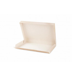 Prix 29,90 € HTConditionnement : 25CTG42Caja Traiteur Lujo blanca de cartón ligeramente gofrado, ideal para cócteles-comida o cena. Con su apertura frontal y su tapa abatible, sirve para presentar con facilidad bandejas de servicio llenas de petits fours dulces o salados. -