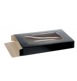 Prix 78,90 € HTConditionnement : 50PSK10NEstuche de cartón negro con ventana de PVC (310x170 mm) para una perfecta visibilidad del contenido. Las bandejas introducidas en su interior pueden transportarse de forma segura e higiénica. Este estuche se adapta a la base de la bandeja para comida SBN4N. -