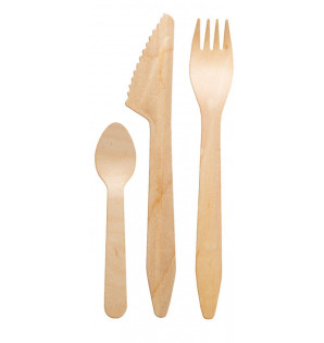 Minimalistas y naturales, los cubiertos Madera se venden por separado o en kits de cubiertos (en estuche de papel kraft):