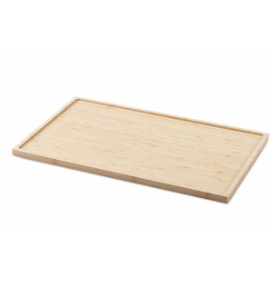 Bandeja de presentación de bambú, con bordes, en formato Atlas 1/1. Con su excelente calidad y hermosos acabados, esta bandeja es reutilizable. La gama Mika está disponible en formatos Atlas 1/2 y 1/4, MKB12 y MKB14