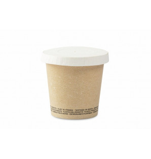 Vaso de cartón kraft de 10 cl para bebidas frías y calientes. Se cierra con una tapa plana de cartón XCVC63 y se puede transportar con el portavasos P4GB.