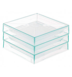 Plato cuadrado de 55 cl, color verde agua translúcido y apilable.