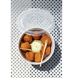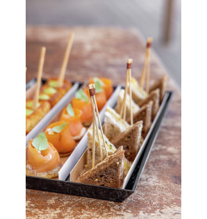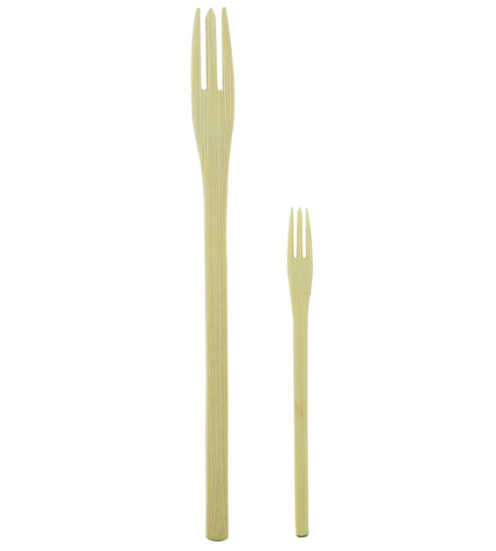 Tenedor de bambú, muy fino y delicado. Puede utilizarse como mini tenedor o pincho para sus cócteles. También disponible en formato pequeño FGB85