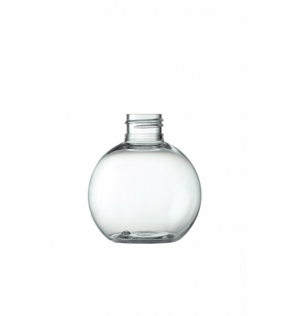 Frasco redondo de PET transparente para combinar con el tapón de aluminio BA11. Su forma redondeada facilita la creación de hermosas presentaciones: gazpacho, salsas, mini cócteles... Para jugar con los volúmenes, se puede combinar con el frasco Sfera 25 cl FS250