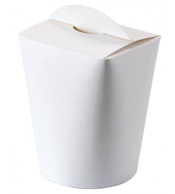 Noodle box de cartón blanco de 50 cl, para presentar los clásicos fideos chinos u otras recetas exóticas cocinadas al wok (fideos de arroz con pollo pad Thai, satay indonesio, gambas a la cantonesa…).