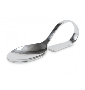 Cuchara de aperitivo de acero inoxidable con mango curvado, para presentar aperitivos con elegancia. Es lavable y reutilizable.